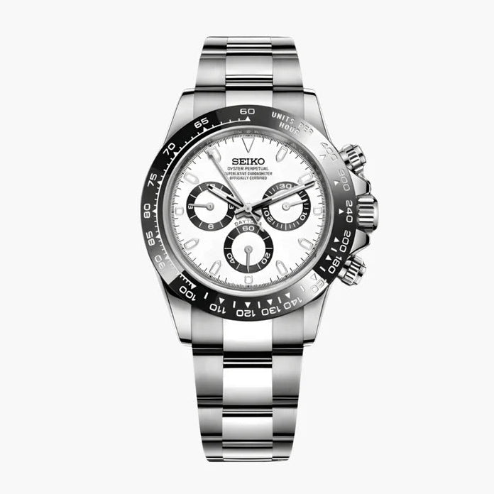Inspired by the iconic Daytona and powered by the prestigious Seiko VK63 hybrid movement, the Seiko Mod Daytona is a 40 mm high-end watch merging excellence and affordability.